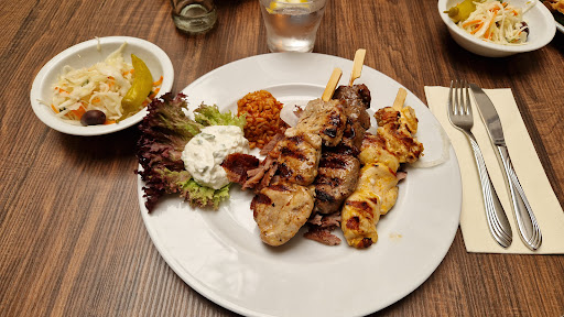 De hoofdgerechten (het standaard verhaaltje van Souvlaki, gyros, etc. ) is taai en in het geval van de gyros veel te zout. Daarnaast is de gyros te lang gebakken en op bepaalde plekken zelfs aangebrand.