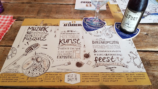Read moreNiet om het een of ander maar als je in Veghel komt en je bent een beetje opzoek naar cultuur, een drankje en een leuke sfeer is dit echt het café waar je naar toe moet gaan. Ten eerste is de locatie van het lunch café alleen al top. Het is namelijk gevestigd in de oude koeksfabtiek van Veghel, op de plaats waar alle dierenvoederkoeken in de zak werden gedaan, zodoende de naam Afzakkerij, wat op zichzelf al een mooi zicht biedt. Daarnaast is er enorm veel te doen rondom het café heen, het heet namelijk niet voor niets het culturele centrum van Veghel. En daarbij is het personeel dat er werkt ook altijd echt super aardig en behulpzaam waarbij je al je vragen kwijt kunt over zaken die over bijna heel het gebouw gaan. Verder zijn er ook vaak enorm veel diverse activiteiten te doen of heel veel zalen te huur die voor allerlei evenementen gebruikt kunnen worden. En als kers op de taart is er ook nog eens iedere zondag een nieuw optreden van een verschillende lokale bands. Ik hoop dat jullie iets aan deze review hebben gehad! Groetjes, Tim de...