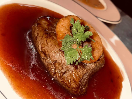Wij hadden als voorgerecht carpaccio hij was lekker maar er lag vanalles op dat voor mij niet op carpaccio hoort zoals paddenstoelen. Als hoofdgerecht had ik spareribs die was lekker ook goed gaar. Ik heb hem nog gedeeld met tafel genoten want ik kon hem niet op. Mijn vriend had ossenhaas puntjes die waren ook erg lekker. Dit werd geserveerd met friet, een schaaltje voor twee personen. Als toetje appel crumble. Lekker maar ik had graag wat meer crumble gehad.