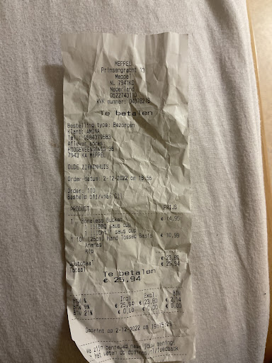 I ordered pizza with no cheese ,I was delivered a pizza with cheese,I ordered chicken wings with bone ,nugget was delivered to me ….25 euros wasted …..An hungry night for a tired breastfeeding mom …. I called to complain and staff and supervisor were telling me I ordered what I didn’t order….. Domino’s Meppel you did me so bad tonight….. also I didn’t request to add barbecue sauce and chilli sauce ….The person that took my order you really made me hungry this night cos I cannot eat...