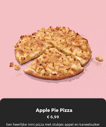 Read moreIk ben meestal tevreden met het eten dat ik bij jullie bestel, ook al vind ik het vaak wel erg hetzelfde. Maar onlangs zag ik dus de "bankzitters" pizza's en bestelde ik vandaag naast mijn andere pizza de Apple Pie pizza. Op het plaatje ziet de pizza er simpel, maar heerlijk uit en toen ik eenmaal mijn Apple Pie pizza doos opende moest ik toch een partij lachen. Wat is dit joh? Ik kan niet eens proeven of het wel appel is en ik proef de kaneelsuiker niet eens. Ik proef niets van wat ik hoopte te proeven bij het zien van de Apple Pie pizza op jullie website. Het zag er zo overheerlijk uit, net als een gebakje. Dat wat ik kreeg is gewoon smaakloos en lijkt niet eens op de afbeelding op jullie website. Misleidend? Of iemand die geen zin had om te werken vandaag? In elk geval €6,99...