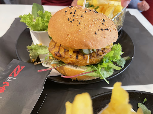 Read moreTolles Restaurant mit wirklich angagiertem Personal mit einem besonderen Konzept, fanden wir ganz toll. Zu 5 mit Kinderwagen haben wir zur Mittagszeit grad so einen Tisch bekommen, wir würden empfehlen zu reservieren wenn man mit großen Gruppen kommt. Personal sehr nett und freundlich, wir wurden sehr nett am Eingang empfangen und an den Platz geführt. Spieltische für Kinder vorhanden sowie Kinderstuhl. Wir haben Rinderburger bestellt sowie Chickenburger. Wir haben bestimmt schon bessere gegessen aber uns hat es dort echt gut gefallen. Nächstes mal würde ich was anderes probieren, die Burger könnten etwas saftiger sein sowie etwas Ketchup dabei sein. Toilette im 1.OG vorhanden, Burger kosten ca. 15 €, sehr gutes...