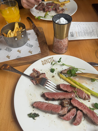 Op een heerlijke zomer zaterdagavond 13 augustus 2022 hier met vier personen buiten gegeten. Onze bediening was een 18 jarige jongedame die al behoorlijk commercieel ingesteld is. Zullen we beginnen met een cava? Deze vonden we later terug op de rekening voor € 9,90 per glas. Wilt u nu een bitterbal? € 14,00 voor vier bitterballen die overigens prima smaakte. We kregen daarna uitleg over de kaart. We kozen voor een gedeelde Carpaccio Roast (€17,50) die wilde delen. Wilt u er geen twee om te delen vroeg de jongedame? Nee één vinden we na de bitterballen en de garlic flat bread (ongevraagd gebracht voor €5,50) voldoende. We kiezen The Wagyu experience (€ 175,00) voor twee a drie personen volgens de kaart en één Tasting Hereford voor € 45,00 per persoon. Later bleek dat er twee van zijn aangeslagen € 90,00. Na telefonisch contact de volgende dag bleek dat geen vergissing want je moet er minimaal twee nemen wat niet op de kaart staat. Bij de Wagyu experience staat er wel duidelijk € 175 voor twee an drie maar bij de Tasting Hereford zetten ze liever geen € 90,00 voor twee. Op het verkeerde been zetten noem ik dat. We kregen twee behoorlijk grote borden met diverse soorten vlees. Sommige waren lekker mals, de meeste hadden een (behoorlijke) bite. Smaak was prima, enkele stukjes door spiertjes / zeentjes niet te eten. Al het vlees leek toch wel erg op elkaar. Bijzonder was dat er niet werd gevraagd hoe we het vlees gebakken wilde hebben. Erg basic al dat vlees met twee sausjes die overigens prima smaakte. De Spaanse rode wijn Liberaria € 39,00 was lekker bij het vlees. De nagerechtjes voor elk € 11,00 bestaande uit bosvrucht romanoff en omgekeerde appeltaart smaakte lekker net als de koffie. Al met al niet slecht gegeten maar het totaal van de rekening € 430,10 zorgt toch voor een zeer matige prijs / kwaliteit verhouding. Het lekkerst was de carpaccio. Een van ons werd 's-nachts zwetend en misselijk wakker en moest overgeven. De andere niet dus het zal we iets persoonlijk zijn (of net een verkeerd stukje vlees?). Alles bij elkaar hebben we prima gegeten (er bleef vrij veel vlees over) maar zeker geen ruim honderd euro per persoon waard. Hier gaan we dus niet meer naar terug waarbij het op het verkeerde been zetten met de Tasting Hereford die voor ons gevoel dubbel werd afgerekend het...