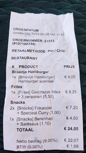 Read moreTen eerste schrok ik enorm van de prijs, maar goed als de kwaliteit goed is hoor je mij niet klagen. Maar dit was echt een verschrikking. Ten eerste waarom word er 50 cent extra berekend als je een frikandel speciaal met curry wil hebben? We betalen nu dus 3,60 voor een frikandel speciaal. Voor 8,25 hadden we een halve zak patat gehaald ik weet zelf dat de prijzen omhoog gegaan zijn,dus dat snapte ik nog wel maar als je de kwaliteit van de patat ziet is het gewoon schrikbarend het was oud en droog. Of het vet was te oud of de patat is vaker dan 1 keer in de frituur geweest. En dat moet toch niet gebeuren voor zo'n prijs. Daarbij had ik weer een keer zin in een berehap waarvoor ik 1,10 extra moest betalen voor de saus, ik noem het wel saus maar dat is het niet waard om zo genoemd te worden. Veels te dik en daardoor ook veels te pittig. Ipv van lekker te genieten van de patat schrijf ik deze review want na een paar happen is mijn eten in de prullenbak beland! Geen foodmaster meer voor ons! En ik hoef ook geen bijdehand antwoord op deze review. Deze tijd kunnen jullie beter stoppen in het verbeteren van...