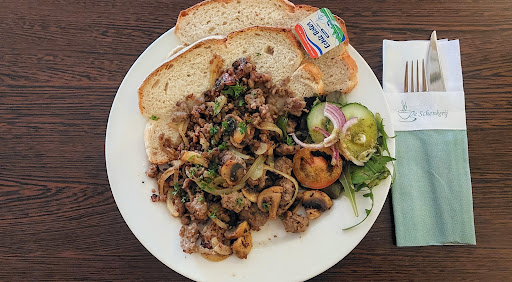 Gebruik mijn lunch als afwisseling bij Lunchcafé De Schenkerij. Kies dan Stoet Orvelte (Geruld gekruid gehakt, ui, champignons). Heerlijk! Persoonlijk had ik wat meer 'aankleding' (garnituur) willen zien, zoals wat meer uiringen, paprikastukjes, groente, champignons... Nu een beetje magertjes. Ook de menukaart is voor een Lunchcafé toch wel vrij beperkt. Begrijp dit trouwens echt wel...van alleen de lokale bevolking e.o. kun je jaarrond niet leven.. Maar je kunt natuurlijk ook op die vele topdagen alleen dan iets extra's aanbieden?!
