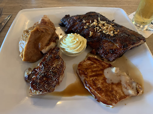 Net voor Corona hier gegeten, het was echt superheerlijk! We kregen een knabbeltje vooraf en een courgettesoepje van het huis. Het vlees wordt precies zo bereid als je hebt aangegeven. Wij hadden T-bone en haasbiefstuk, de lekkerste sinds heel lange tijd! Fijn, een saladebuffet. Goede vriendelijke bediening, niet alleen maar beroepsmatig vriendelijk. En ook nog nette prijzen. Heerlijke desserts, we konden eigenlijk niet echt kiezen, dus binnenkort komen we weer terug! Wel op tijd reserveren, anders vis je achter het net!