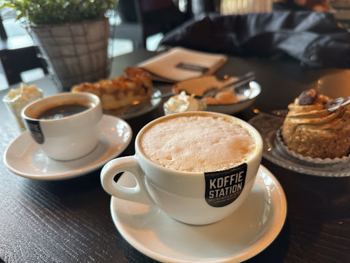Read moreMijn man en ik hebben hier vanmorgen gezeten voor koffie met een gebakje. Mijn man had een koffie besteld, deze smaakte naar een heerlijke americano. Ik had een cappuccino, deze was prima maar ik vond de koffie niet geschikt qua sterkte en smaakprofiel voor een cappuccino, te mild. Het melkschuim was niet ingeschonken latte art zoals je zou verwachten van een koffietentje die aangeeft met echte barista's te werken. Het leek gewoon uit een apparaat te komen. De dames van de bediening waren allemaal heel vriendelijk, sociaal en attent. Je kon zien dat ze zin hadden in hun werk. De gebakjes van bakkerij Meijer waren ook erg lekker. Erg gastvrij ook dat je van het huis een klein glaasje tokkelroom krijgt bij bestelling van een koffie. Het is een leuk zaakje om even te zitten. Enige nadeel van het tentje vonden wij de belichting, deze scheen te fel waardoor het licht pijnlijk was aan de ogen. En bekabeling aan het plafond leek ook wat rommelig, vandaar de 4 sterren voor de sfeer. Al met al wel een aanrader en voor...