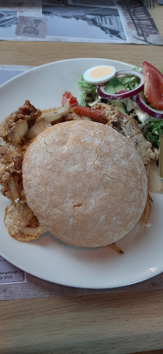 Kabouter en Kwebbel fietsten🚲🚲zondag via Krimpen ad Yssel en Kinderdijk via de Lekdijk terug. Veerpontjes ⛴waren niet allemaal bemand op zondag dus 🚲🚲via Streefkerk naar Bergstoep. Affijn Kwebbel zag👀deze uitspanning " Cade Eeterij t Centrum en Kabouter kreeg t advies hier te stoppen🤣. Binnen gekomen een gezellig cafe , ogend als n huiskamer met( iets voor Kabouter te luide) muziek, maar wel hartelijk en knus uitziend van binnen. Soort pubgevoel. Hartelijk verwelkomt door de familie 🤷♂️🤣 . Er zaten ook wat minder jonge dames. Was lkkr warm binnen. Afijn lunchkaart bekeken en een panine tosti voor Kwebbel met T en Kabouter een broodje " geklutst" ei🥚🍳. Met lkkr uien🧅 en vers broodje🥖 👌. Goede lunch hapen n weizen🍺. Hele goede hap😋😋👍 na een tijdje weer opgestap, maar de prijzen verbaasde Kabouter. Heel heel schappelijk in vergelijking met andere adressen in regio Rtd. Al met al een heerlijk adres 👌om je paardjes🚲🚲uit te rusten. Zeker de moeite waard voor de gastvrijheid en gezelligheid en...