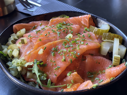 Read moreI went here in the afternoon and it was quiet, so I can't judge the atmosphere, but I can imagine it to be very cozy in the evenings. The service was good. They were fast and friendly and asked us in between how things were. The food, however, was mediocre. It wasn't bad, but the smoked salmon salad I had for example mainly consisted of rucola and had big chunks of salmon, pickles and little to no dressing. It was...different, if you will, but not my taste. I've heard that the home made soup was...