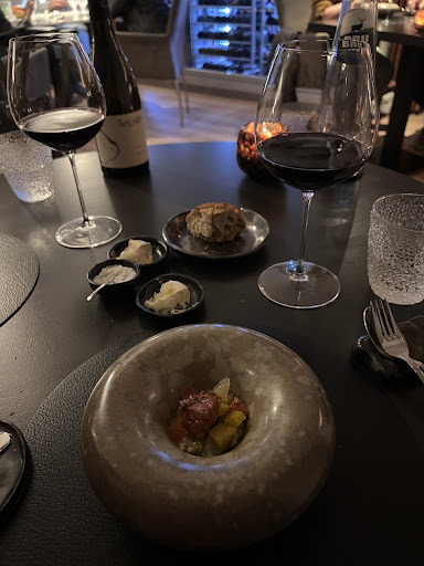 Ā Ā Ā Read moreNa een te lange periode retour naar het pittoreske Linschoten. Parkeren kan nog steeds achter het restaurant. fijn. We werden begeleid naar een tafel in de serre, prima. Op tafel stond een zadencracker met een frisse dip van groene kruiden, lekker. De uitgebreide champagnekaart en dikke wijncatalogus werden gepresenteerd. Ik koos de VirĆ©-ClessĆ© van Chanson die uitstekend beviel. Ernaast een strak gepresenteerde hapjesparade. Om te starten een groene āolijfā met vloeibare vulling, goed. Crispy tartelette met crĆØme van bloemkool afgedekt met parels van zeewier waarin takjes zeekraal, een verrassende smakencombinatie. Krokant nestje van aardappel waarop crĆØme van witte soja afgedekte met plakjes gemarineerde shiitake gekruid met poeder van gerookte ui. Mooie gelaagde smaakbeleving met prima texturen. We sloten de parade af met een tartelette met compote van ananas waarop een glimmende parel mousse van koolrabi met gele curry, sappig en fris, prima.