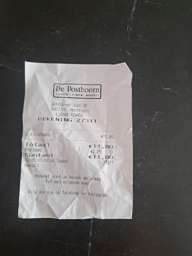 De Posthoorn is a modest and no nonsense cafe on the road between De Meern and Montfoort. The interior goes back quite some time, nothing fancy. Nice people give you a cold beer while you wait for a decent dinner. Good portions, quality food, fairly priced. Very nice to sit at the bar with the locals, play darts or...