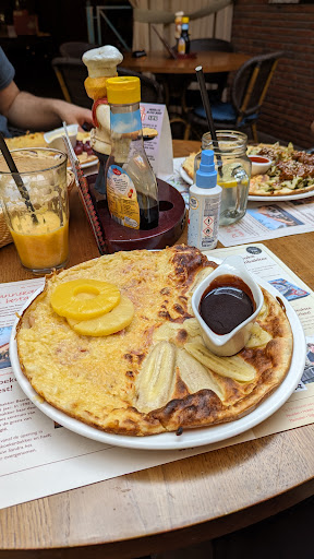 I went there after a long bike ride in the hills surrounding the area. The food came in right on time and the service was excellent. I had ordered a half salty and half sweet pancake. Although the cheese was more than generous on the salty side, the pancake was a little burnt, maybe looked like it was made in a hurry. The dough was a little chewy. I have had mixed experiences here. Sometimes the pancakes are good and sometimes a little disappointing especially since these are some of the priciest pancakes in the region. Nevertheless, a decent place...