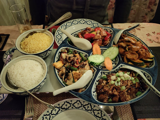 The food was not what I could say was from Thailand. It was more like mediocre chinese food. I found it disgusting and will not be coming back again. Even if it was the only food store open. I tried a little of everything, the rice, the vegetables, the chicken, the wings, the beef, it was all tasteless and unappetizing. The owner, a Dutch man, seemed to be nice. Until I was asking questions of the country dish (Pad Thai) and why it was not on the menu. He proceeded to try and BS his way into saying "It's not a popular dish here" to "It has to be cooked a certain way and consumed within a certain amount of time or the noodles turn black" Wanted to tell me a back story about himself and his wife who cooks the food. She is from Thailand and something to the extent that he knew what he was talking about. Apparently, he was bothered by my question. The overall impression is he could have just said "No we just don't cook that" No need to waste my time liying to me about my favorite dish. A dish I know too well and know how to make myself. Ether way, I didn't press him any further and just made an order for a little of everything. Like I said earlier, the food was not "Wow!" or good. For what you pay. It's not worth it. You're better off driving a little further and grabbing something from the Chinese restaurant. You're lucky if they even give you attention because they are too busy with the hotel thing they got going there as well. I wouldn't...