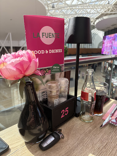 Wij hadden een half uur gewacht aan een niet leeggeruimde tafel totdat een tweede medewerker kwam. Vervolgens bleek onze bestelling niet te zijn gecommuniceerd door de eerste medewerker. In plaats van een simpele ‘sorry’ namens La Fuente bleef de tweede medewerker herhalen dat de bestelling niet aan de kassa (en dus de keuken?) was doorgekomen en dat we het haar niet kwalijk konden nemen. Daarnaast kon zij ook ‘echt niet’ aangeven hoe lang het zou duren voordat het eten kon worden geserveerd. Volgens haar kon immers ‘op elk moment besteld en afgehaald worden’. Blijkbaar genieten mensen die bestellen en afhalen voorrang. Uiteindelijk bleef de tweede medewerker pushen dat wij alsnog konden drinken zonder te eten wegens gebrek aan tijd. Ronduit...