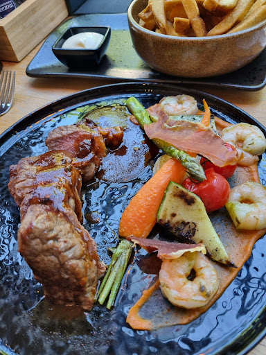 Read moreEen grand café met een leuke uitstraling. De bediening is erg vriendelijk, overzichtelijke menukaart, de voor- en nagerechte hebben pittige prijzen. Genoten van het voorgerecht, 4 bruschetta's per persoon met gevarieerd beleg. Als hoofdgerecht een tournedos en eendenborstfilet. De tournedos met 29 euro flink geprijst en schepte dus hoge verwachtingen. Beiden stukken vlees netjes rosé gebakken en smaakten heerlijk. Bijgeleverde groenten tot snot gekookt, weinig smaak en de hoeveelheden erg klein. 4 muizenbrokjes bietjes passen net in holle kies. Groenten niet passend bij de goedgebraden eend. Opmaak niet fraai. Dit allles dan ook aangegeven bij de vragen "Is alles naar wens?" en "Heeft het gesmaakt?" Het zou worden doorgespeeld aan de keuken.