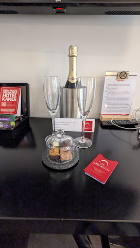 Dan een bediende aan je tafel hebben staan met de tekst: "ik weet niet wat dit is, dus ik zet het maar op tafel", terwijl het ging om een biertje (la chouffe) wat er ook nog eens met grote letters opstond en waarbij het drinken ook nog met het logo van de persoon af en buiten bereik werd gepresenteerd, maakte het geheel vrij bijzonder.