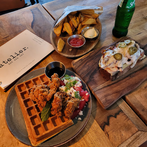 Normally i am going to atelier during the day for lunch/brunch or coffee and always enjoy it. So we decided to try it out for Friday evening dinner. The place was full so we were asked to wait at the bar counter where also another group was waiting. After 45 min or so the other group got a table. We didn't. For the whole evening. Although We asked couple of times. All the tables that got free were all of a sudden for upcoming reservations. At some point we got so hungry that we decided to accept our destiny and ordered to eat at the bar. The food and the drinks are def good (but quite expensive). As the counter is also where used glasses are stored, my friend was in the end surrounded by used bottles and glasses while eating. Which is ok for a bar evening but not if i pay a lot of money for my dinner. I would come back for one drink. Def not for...