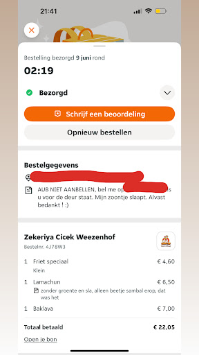 super slecht!!! ik heb hier op 9 juni een turkse pizza besteld waarin staat GEEN GROENTE GEEN SLA ALLEEN BEETJE SAMBAL. Ik krijg een turkse pizza met groente en sla en geen sambal. Ik heb meteen daarna de restaurant opgebeld en gezegd dat mijn bestelling verkeerd is gemaakt. Natuurlijk kan dat gebeuren en normaal vind ik dat nooit erg. Ik kreeg een man aan de telefoon die zei ja sorry we kunnen een nieuwe brengen maar dat gaat even duren. Ik heb gezegd ja laat maar, het is al 2 uur en t heeft geen zin meer, dan wil ik voor de turkse pizza m’n geld terug. Hij zei dat hij mij meteen na ons belletje een appje zou sturen waarin ik een tikkie kan sturen en hij m’n geld overmaakt. 1 dag later, nog steeds geen appje gekregen. Weer gebeld, ineens wist niemand met wie ik had gesproken en moest ik om 20:00 uur avond terug bellen. Weer gebeld, ik moest om 22:00 uur weer bellen. 22;00 weer gebeld, telefoon die staat uit en niemand neemt op. 2 dagen verder, weer gebeld, meneer zei dat ik weer later moest bellen want de persoon over wie het ging zou er pas in de avond zijn. Mijn vriend heeft daarna gebeld, weer staat de telefoon uit. 3e dag weer gebeld, en weer staat de telefoon uit. Echt oprecht, ik heb nog nooit zo een troep cafetaria meegemaakt. Alsof ze daar werken zonder rooster. Kei ghetto. En dit alles voor 6,50 euro lol. Ik raad niemand deze shitzooi aan, daarnaast was t niet eens te vreten, naast die turkse pizza hadden we ook n friet speciaal gehaald, die friet lag overal behalve in waar die hoort te zitten. Heel die zak lag vol met friet mayonaise en ui, we hebben het gewoon terug in het bakje moeten stoppen. Hoe krijg je dat voor elkaar joh, echt vreselijk, net alsof ze daar werken met...