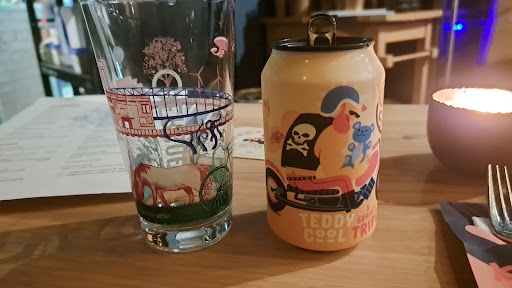 Let's begin with the positivity stuff. I enjoyed my cosmopolitan, very fresh and delicious! The sweet potato fries were crunchy and declines but a very small serve for the price point. I was so disappointed by the rather slow service and lack of English menus. It took me a long while to manually translate every item on the menu to know what I was ordering. I ordered the grilled aubergine which could have equated to maybe 2-3 thin SLICES of aubergine with a dash, (which is a generous word to describe it) amount of sauce and garnishes to make it look pretty im assuming. For a miniature portion of aubergine I paid a shocking 11 EURO? I left feeling more hungry than we came in. To add on top of my disappointing experience they do not accept Visa cards. The Netherlands is part of the EU and the only country where I keep experiencing this mess. Please fix it. It's a pity because the bar is located at a very pretty street in Nijmegen, the interior is stunning but maybe take some of the budget for the flowers inside and use it for a machine that accepts visas and print some...