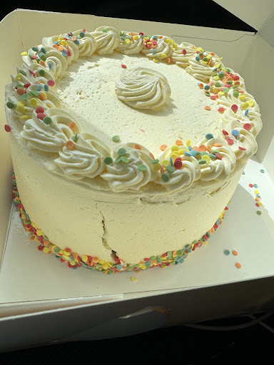At pickup, the staff said they could not place the baby booties for me as they had no buttercream...which is extremely odd for a bakery not to have this on site, and especially since I was told this would be done for us. They also DID NOT provide a box for the cake! I have never been told to take a cake from a bakery just exposed to the air without any package or box covering it! This was unacceptable and highly unprofessional. I asked repeatedly for a box and was told they did not have any and do not usually give boxes for cakes...? This was a baffling experience and the staff was very firm and unwilling to help come up with a solution.