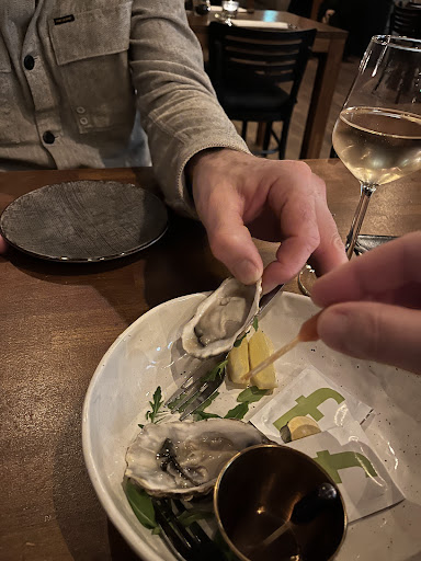 We ordered the Duck Liver, salmon tartare, and oysters for appetizers. The duck was class A fois Gras, the salmon had a nice fruity and spicy kick to it, and the oysters were fresh. I ordered kangaroo for the first time in my life. It tasted like gamey steak and was scrumptious. All around great meal but the service was incredibly slow and we had to flag the waiter several times to get our dessert order in. A meal that could have easily been less than 2 hours...