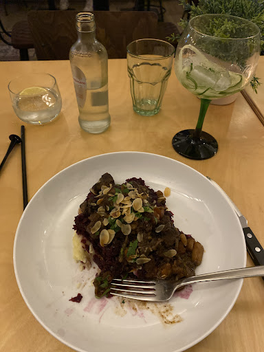We walked back to our apartment from the Nijmegen Centraal train station after a FULL day of travel, and we were exhausted and starving! So, we decided to walk over to Wijck, our neighborhood restaurant, where we knew we could get a strong cocktail and a delicious meal. The waitress encouraged us to try the day’s special. She typed into my Google Translator app, “ stroof met rode kool en aardappelpuree”, or -in English - stew with red cabbage and mashed potatoes. Truly Comfort Food!! A generous portion of delicious, sweet, hearty beef stew arrived, and it was the perfect dish! We both ate every bite of large, tender chunks of beef, roasted onions, squash and beets(?) in a sweet stewed cabbage sauce on a generous bed of mashed potatoes!! Our new, favorite dinner spot...