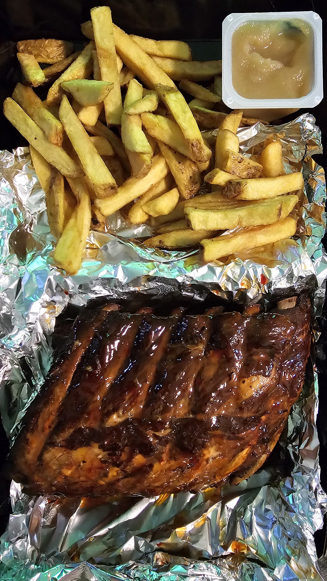 Read moreHaal je spare ribs bij de naastgelegen Jumbo!!!!! 2 ribjes gekregen voor het geld waar je van uiteten kan. Ribs horen te smaken naar zelf gekozen saus, Deze was ver te zoeken!! Gepofte aardappels zijn in het aluminium gewikkeld en in de oven gepleurd, Zelfs een kleuter kan deze lekkerder maken. Over de kleuter gesproken dat was degene die ons te woord stond achter de balie. Lekker met der vieze handen aan mensen der eten en weer aan der telefoon en weer aan de kassa en het pinautomaat die zo'n 100 man per dag beet hebben. Verder oogt de locatie zelf als een vieze boel. Zitten er allemaal ongeïnteresseerde bezorgers in der eigen kleding die je niet eens groeten. Van achter uit de keuken hoor je constant gevloek en geklaag over de bestellingen van de mensen die der salaris betalen... Kortom NOOIT MEER...