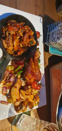 Daarna begon het lange uitgebreide wachten op onze all you can eat kip. Dat duurde uiteindelijk 1,5 uur, bizar lang. Veel gerechten op de 2pers. schaal waren niet lekker of erg droog. Mijn speciaal gemaakte schotel, daarvan waren de drumsticks wel aardig en de kip piripiri. De stoofpeer smaakte naar drop. Echt heel vies.