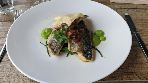 The ambience is visually pleasant, in the conventional international style of the day (enjoyable view of the marina) though it is extremely loud inside. Whether it was owed to language issues or the brutal acoustics, the service made a number of ordering errors and was not particularly attentive in general. The food ranged from very good (beef skewers, oysters, mussels, lavender parfait) to mediocre (smoked salmon, sea bass on local greens, both of which were not very flavorful and the latter dish prepared with too much cooking oil). Summary impression: Expect decent bistro cuisine. Lots of potential was left unfulfilled on this occasion, more so in the service than in the kitchen. Sit outside if the...