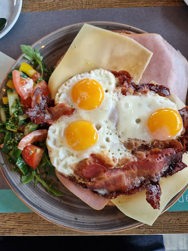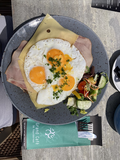 Het Grand Café is gezellig ingericht, trendy met hout en zwart metalen accenten. Er is een veranda waar het heerlijk vertoeven is in de zon. Er hangen filamentlampen en minituintjes van het plafond af. De bediening is zeer vriendelijk, niets op aan te merken. De kaart is een mooie selectie van een aantal gerechten die je mag verwachten (Caesar salad, steak,...). Ze bieden een aantal gerechten aan als lunch/tussendoor, maar hebben ook een gedeelte voor de grote honger. Voorgerechten, vlees- of visgerechten (4 vlees, 4 vis ongeveer) en desserts. Het eten was lekker, goed van kwaliteit en mooi gepresenteerd. De speeltuin die hier vlak bij is, is leuk voor de kleine kindjes en ietsje verder is een speeltuin waar de wat grotere kinderen zich kunnen amuseren. Er is ook een klein verwarmd zwembad vlak aan het terras (wel enkel geopend in het seizoen, vanaf half april...