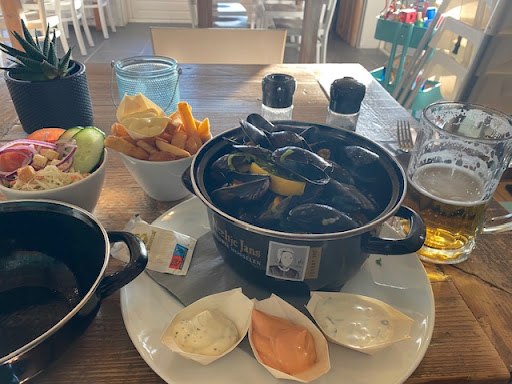 Read moreKom hier vaker en na de brunch van het weekend heb ik eindelijk besloten om mijn recensie te plaatsen. Begin met positieve aspecten: mooie ligging, gelijk aan het water, vriendelijke medewerkers, mooi, ongedwongen kader. Het eten is iets ander geval. Op het eerste gezicht zit het eten goed uit. Helaas heb ik het idee dat het keukenpersoneel geen ervaring en kennis heeft. Bij een geitenkaassalade krijg je koolsalade erbij...bizare combi die niet te combineren valt voor een ervaren kok. Van het weekend een bak sla gehad waar dus alweer een koolsalade zat met een vinaigrette bovenop...hoe verzin je dat? De friet was gebakken in oude olie, niet lekker dus. Een pan mosselen gehad die gewoon heel slecht waren. Aan de mosselen zelf kan de keuken niks aan doen maar waarom zat zo veel zand in mijn pan? Waren de mosselen goed afgespoeld en in ruim voldoende water gekookt? Dat denk ik niet. Ze smaakten super zout plus het zand zegt genoeg voor mij. Mijn advies zou zijn: werk aan je kwaliteit, was goed je producten, spoel de mosselen zeer royaal af, maak combinaties die wel kloppen. Kijk nog is kritisch naar je mosselsauzen, staan ze niet al te lang ergens geparkeerd? Opscheppen van sauzen doe je voor je het gerecht serveert, niet (uren) eerder. Je moet het hebben niet alleen van de toeristen maar ook van mensen die in de buurt...