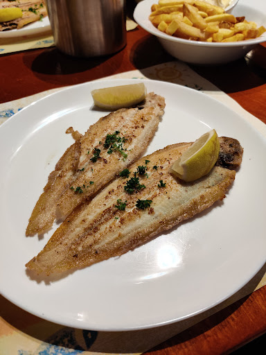 Read moreOpzich gezellige locatie maar eten viel toch wat tegen. Het was heel rustig, iedereen voor ons had al eten en toch hebben we een kleine 50 minuten moeten wachten op sliptongetjes. Sliptongen waren oké, heb al betere gegeten maar niet slecht. Portie friet was wel echt klein (2 porties voor 4 personen) dus we hebben moeten bij vragen en dat werd dan ook aangerekend in de prijs...Vervolgens vroegen we aan de bediening of de dame blanche met echte chocolade gemaakt was of met chocoladesaus uit een fles en ze zei nee we smelten onze chocolade zelf. Dit was dus NIET het geval, wat toch wel een teleurstelling was, daar we dit niet als dessert hadden genomen als we dat hadden geweten en dat toch wel expliciet hebben gevraagd. Ik denk dat je voor hetzelfde geld beter elders in...