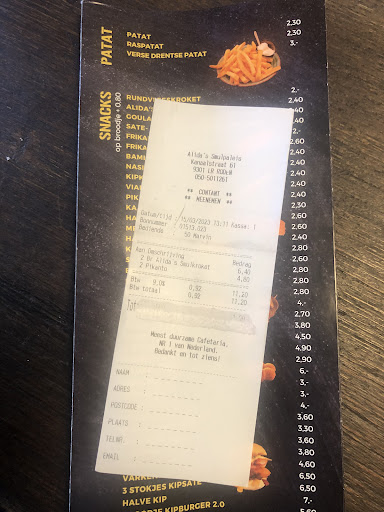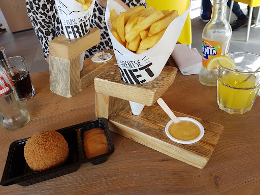 Wij kwamen hier gisteren om even te lunchen met 3 personen we dachten ah even lekker per persoon een plate te bestellen van 2 van 12 euro en 1 van 9,50 waarom een plate want is lekker om alles op een bord te krijgen Achter ons waren een aantal jongeren die ook een plate hebben besteld en eerst kwamen onze borden zonder de patat alleen de snacks en saus en vervolgens een kleine diepe bord werd nagebracht wat voor 3 personen moest zijn wat ik voor 1 persoon meer vond voelen we hebben ook wel eens een gewoon een patatje met een snack besteld waar je gemiddeld 6 euro voor betaalt en zelfs dan is de bord nog voller ..vervolgens kregen de jongeren achter ons de plate en daar zat wel alles op bord vol patat en dezelfde plate als die ik had met snacks en patat alsof het personeel die jongens konden en daarom even wel goed portie we hebben er wat van gezegt er werd gezegt dat wel.wel wat mochten bijbestellen maar dit is vind ik niet de bedoeling als ik een plate besteld wil ik dat alle klanten gewoon even veel moet krijgen en wat ik vervolgens ook niet zo professioneel vond lijnen dat een persoonneelslid die zelf even ging eten een grote diepe bord vol patat liep te eten met een dikke snacks dat bord was eerlijker geweest dat was minstens wel een 2 personen portie en wij een kleine diepe bord wat ik erg karig vind voor 3 personen ik had een kroket menu van 9.50 dus 2 kroketten wat 5 euro eigenlijk kost Als ik dit los had gedaan En x2 halve kip voor 12,50 per persoon Plate ik vond dit niet waard