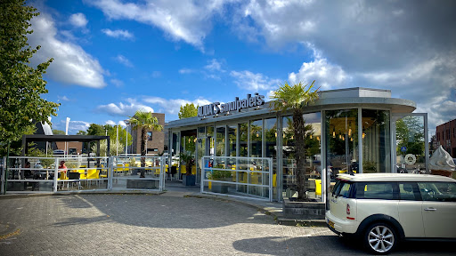 Read moreWe hadden een 12 uurtje, patat met en 2 bananen shakes besteld. 12 uurtje is een plate met 3 boterhammen, 1 met kroket, 1 met gebakken ei ham kaas en 1 met rundvleessalade. Daarbij een kleine verse salade met dressing. De milkshake banaan smaakte werkelijk nergens naar. Volgens mij heeft het naast een banaan gestaan ipv erin. Was gewoon softijs smaak. De patat was te lang gebakken waardoor bijna de helft weg kon. Bij beide borden was er een stuk afgebroken waardoor het toch wel erg goedkoop leek en onverzorgd. De salade met dressing was erg lekker, de boterhammen waren vers en wat dikker dan normaal, wat ikzelf wel erg lekker vind. Gebakken ei was ook goed net als de kroket maar de rundvleessalade vond ik toch wat tegenvallen en aan de smaak te proeven zou je kunnen denken dat ie al even uit de koelkast was. Je kunt wel zowel binnen als buiten onder een parasol zitten en vanwege de warmte hadden ze een paar deuren open gezet, het waaide lekker door. Zeker prettig maar een volgende keer zit ik toch liever ergens...