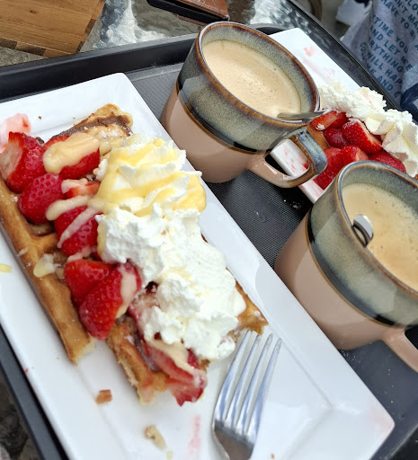 Read moreDe wafels zijn ok vertelt mijn reisgenoot me, maar we hebben eigenlijk spijt van het stoppen hiervoor. Wat een rommeltje. Het past echt helemaal niet bij de plek met die overdaad aan versieringen, vlaggetjes, lelijke reclameposters tussen de grote parkeerplaats en hun pand (mag ook echt niet, vernam ik van iemand van het Gevangenismuseum), etc. En dit is alles blijft, ook buiten openingstijden. De mensen die dit runnen begrijpen echt de historie en gewenste uitstraling van het gebied niet of hebben daar helemaal niets mee, wat ontzettend jammer is. In de beeldbank van de Rijksdienst voor Cultureel Erfgoed vind je een paar foto's van hoe het eruit zag voordat zij er zaten. Heel mooi om dan duidelijk de portierslogo (vandaar de naam) te zien. Een minder schreeuwerige aankleding (zoals alle andere bedrijven in Veenhuizen wel leken te snappen toen wij er waren) doet meer eer aan het gebouw en de geschiedenis. Je zit zeer ongezellig op platen beton zonder enig groen. Ik vroeg naar de ingrediënten want ik eet plantaardig. Degene die ons hielp wist het antwoord niet - hoe idioot is dat, als je ze dagelijks maakt? Goed, heb je iets plantaardigs/vegans te eten of drinken dan? Nee. Nou, dan bestel ik dus niets, hoewel het antwoord natuurlijk totale onzin is: het meeste fris en natuurlijk thee en koffie zijn uiteraard plantaardig. Niet de slimste. Het ergste: het is een RUSTpunt zonder dat het ook maar aan enige voorwaarde voldoet, met name de voorwaarde dat een RUSTpunt niet commercieel mag zijn. Dat zegt wel iets over de mensen, vonden wij. We zijn doorgelopen naar Koffielust. Die moeten nog wat doen aan promotie en ontwikkeling, maar hebben het qua uitstraling en passendheid veel beter begrepen. (Raar antwoord van ze, we kunnen toch een recensie schrijven over een bezoek van een poosje geleden, een recensie is toch niet altijd van de dag zelf? Wat ik al zei, niet de slimste. Ook nog: ze zijn nu inderdaad een paar maanden dicht, maar de spandoeken en ander reclamemateriaal hangen er nog, half los en lelijk, vertellen onze...