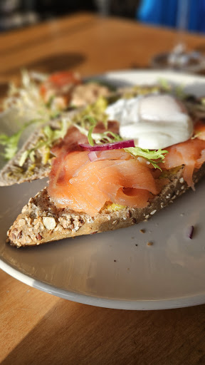 Even over strand gewandeld en na het uitwaaien bleek er geen plekje over bij Nomad. Over de boulevard terug een keertje gelunched bij de Blauwe Gans. Eerlijk gezegd loop ik altijd voorbij, want iedereen binnen is grijs...en daar voel ik me nog niet thuis! Haha. Binnen ziet het er eigenlijk best modern uit. Rieten stoelen, stalen stellingen met planten ed. Best leuk, maar ik kies toch een tafel achterin, waar het nog niet gemoderniseerd is, maar met "normale" stoelen, die mij lekkerder lijken te zitten. Het eerste biertje kwam snel en de keuze was gevallen op een broodje zalm met gepocheerd ei. Vooral dat ei trok mijn aandacht, waar vind je dat nog. Een paar slokken bier later betrap ik mezelf dat ik zit te tellen; 18 restaurantgangers boven de 75, 7 boven de 50 en 4 daaronder. Hoe kan dat? Soort zoekt soort, tja ik doe dat eigenlijk ook. Maar ja...het vooroordeel klopt dus eigenlijk wel. Maar m'n broodje kwam snel en daardoor mijn rekensom weer vergeten. En dat broodje was echt heel lekker. Echt goed met een perfect gepocheerde ei. Rijkelijk belegd met zalm ook. Meer dan prima. Tijdens het 2e biertje hoor ik dat het een tafeltje verder over cholesterolpillen gaat. Ik reken af, misschien moet ik ook eens naar m'n cholesterol laten kijken...ik kom...