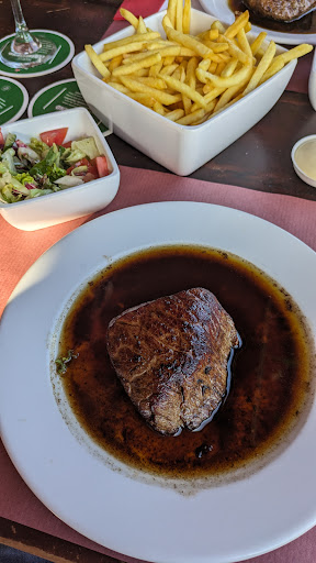The food is simple, well priced and delicious, the bar staff are friendly and welcoming and the bar itself is relaxed, cosy, softly lit and plays bangers. We were all making jokes that it’s like heaven. I’d come every week for the steak if I lived here! I...