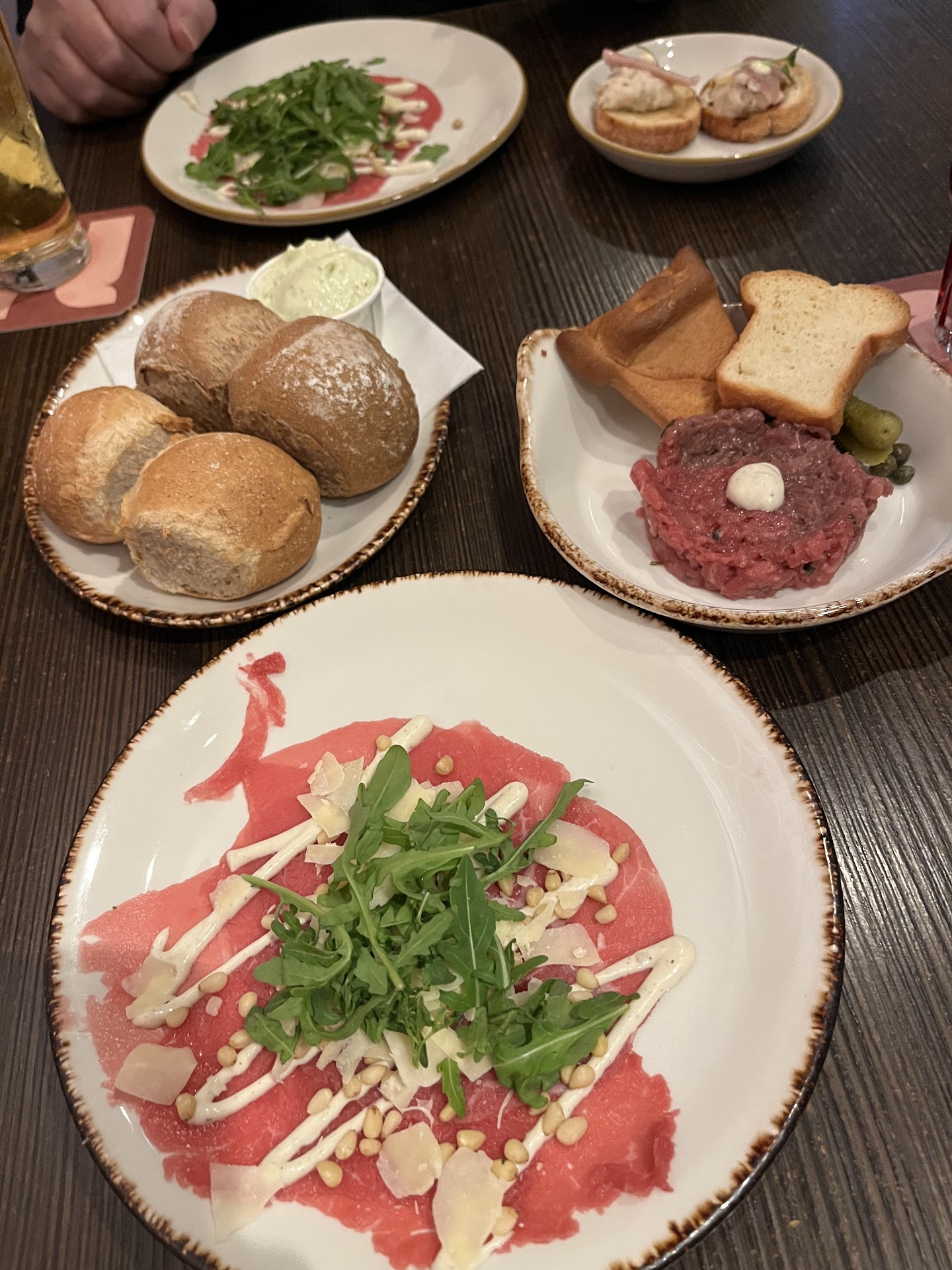 Graag wil ik iedereen op de hoogte houden wanneer je rond 18:00 / 19:00uur komt zal het restaurant vol zitten en zijn de wachttijden met het serveren van bestelde gerechten van 5 / 10 minuten naar 30 minuten lopen. (Wij waren hier om 17:30) Bestelde gerechten worden gelijknamige geserveerd ( niet apart zoals wat klaar is word direct geserveerd maar tot de hele bestelling compleet is ) waardoor je wel merkt dat 1 of 2 gerechten die eerder klaar waren al een beetje afgekoeld zijn. Bestel aan het begin 2 schaaltjes met brood met soort kruidenboter. Brood is warm en zacht en erg lekker voor tussendoor. Tijdens wachten is er altijd wel wat te drinken aan tafel en genoeg topics om erover te kletsen. Voor de prijs van 37.50 all in kijk je dat makkelijk door de vingers.