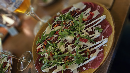 Read moreDeze keer eens uit eten gegaan bij Hof van Holland. Eigenlijk niet de eerste keuze, maar de andere restaurants zaten allemaal ramvol. Zo slecht gaat het nou in NL. Anyway, we werden vriendelijk welkom geheten bij Hof van Holland en de sfeer aldaar is natuurlijk heel leuk. Beetje industrieel, beetje ouderwetse school-vibe, maar ook best een beetje "leeg/kaal". Kan het niet anders omschrijven. De bediening is alleraardigst en vlot. Er liep dan ook opvallend veel personeel rond. De kaart bevat redelijk wat vega, en biologisch verantwoorde gerechten. Wij kozen een broodje vooraf en de carpaccio. Best lekker, maar ook best heel zout. Het extra zeezout eroverheen had niet gehoeven van ons, maar verder was de smaak goed. Vervolgens de hof-steak; Vooraf al in plakjes gesneden; ziet er mooi uit, maar zorgt er ook voor dat het sneller koud wordt. Prima medium gebakken, vond hem niet erg mals, maar smaakt verder goed. De short-rib prima, maar niet heel bijzonder. De tonijnsteak behoorlijk rauw gebakken, achteraf gezien was ook niet gevraagd hoe we die gebakken wilden hebben. Afgeserveerd met 1 bakje friet voor drie personen, waar tafeltjes voor twee personen hetzelfde bakje friet kregen. Al met al okay gegeten, de sfeer en Pater Linus bier zijn de hoogtepunten. Heb...
