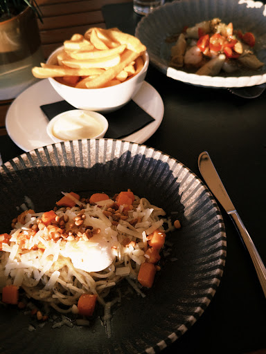 Read moreInteressant dat om een review wordt gevraagd. Het was ronduit teleurstellend. Vanwege het weer was er twijfel of het terras zou kunnen. Er is verwarming werd er gezegd. Die ging echte pas na herhaaldelijk vragen aan, en toen weer spontaan uit. Op het terras liepen drie zeer vriendelijke maar totaal onervaren meisjes die weliswaar hun best deden maar geen controle hadden. Er was geen leiding te bekennen, die liepen allemaal binnen waar ongeveer net zoveel gasten zaten als buiten. Fles water was vergeten, 4 gangen lunch besteld maar drie gangen gekregen (stonden er uiteraard wel 4 op de rekening). Omschrijving van het hoofdgerecht kwam niet overeen met wat er op het bord lag. Alles duurde een eeuwigheid (bijna 4 uur voor een simpele lunch) Kwaliteit van het eten was overigens wel prima. Al met al niet de moederdag lunch die we in gedachten hadden. Als je ⏠19,50 durft te rekenen voor een standaard gin-tonic dan behoor je goed personeel neer te zetten. Is moeilijk in deze tijd maar geef in elk geval leiding of sluit delen van je etablissement af als je de kwaliteit niet kunt waarborgen. De jongens en meisjes die door het "management" in het diep zijn gegooid kunnen er niets aan doen. Die deden hun best maar het is nu eenmaal...