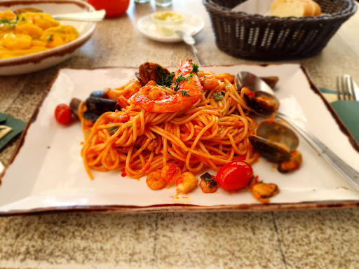 The food was really nice bht the service was the absolut worst. I've been there with four friends and first it wasn't that bad. They got the orders of our drinks wrong and we didn't get any bread but we didn't want this to euin the evening. But my friend and I took an Antipasti plate for two persons... it was pretty small when it came to our table and we asked twice if this is really for 2 persons. They told us that this is the plate for two persons... It wasn't. After about 10 minutes we asked again and they told us it was meant for one person like nothing was wrong. When we told our waiter that we ordered something else he just answered with "tranqilla, its a hot day for me too" and went to another table. He didm't even listen to us (we're all 18 so he pretty much treated us like children) we were really polite about it but he never came to our table for drinks or something else so we had to call flr somebody because we wanted to pay... The food was...