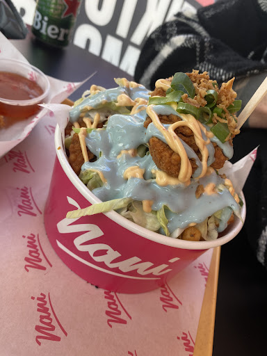 Read moreOp aanrading van vrienden nani besteld. Helaas waren we erg teleurgesteld. Porties zijn erg karig, kapsalon bevat eigenlijk alleen maar slappe friet. Weinig toppings en niet met een echte kapsalon te vergelijken. Ook was de kapsalon erg droog en totaal niet wat je volgens de tiktok zag. Gyozaâs niet te harsen, echt super goor. Zwart en keihard aan de buitenkant en vulling ook niet echt lekker wederom karig voor wat je betaald. Daarnaast sweet Chili saus besteld, kreeg alleen een soort van pindasaus met stukken erin. Dus dacht dat het fout was, maar was wel spicy. Heel raar. Alles was erg taai toen het binnenkwam. Vind het echt jammer aangezien het zo erg is upgehyped op tiktok en totaal niet voldeed aan wat we daarop zagen. Ik plaats totaal geen recensies maar dit moest...