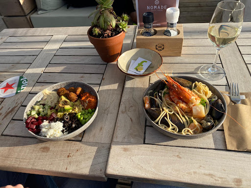 Read moreThe view is fantastic, you can look at the sea directly. We ordered a regular Frappuccino and a Nomade Frappuccino, they were ok. We ordered also a cheesecake and an applepie. The cheesecake was full of berrys which is not mentioned on the card (could be an issue if you are allergic). There is only written "cheesecake". An information before would be nice, next time. But they werw sweet and changed it to an applecake without extra charge. The applecake was full of marzipan, what was also not mentioned, but luckily we love marzipan. And it tastes like it includes a lot of alcoholic roisin. If you have to drive a car, it could be a problem. I ordered a coke and they did bring Pepsi. When I tried to check it on the card, there is no pepsi or cocal cola listed on it, so I didn't know the price. Also we ordered a Weissbier and without any confirmation they brought the one without alcohol...