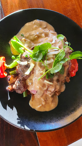 Hele leuke ambiance met al die trappen en vides. 80's muziekje erbij vonden wij erg leuk. Heerlijk gegeten ook. Onze bavette en mixed grill hadden ook daadwerkelijk op de grill gelegen en dat proef je. Ook de sliptong van mijn vrouw bleek erg goed te zijn. De bediening was vlot en uiterst joviaal. Dessert dan tot slot was ook super; crème brullee met een bolletje ijs was perfect en ook de choco trio van mijn zoon viel in goede aarde. Door misverstandje tussen ober en mij was er één crème brullee te weinig besteld, maar ook dat was binnen no-time opgelost. Kortom; echt een aanrader dit restaurant, echt...