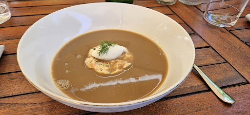 Read moreJa, dit is een ronduit goed restaurant. We waren hier voor Moederdag 2025, terug na enkele jaren afwezigheid. Op het ruime en fijne terras staan geen asbakken op de tafels, dus roken wordt nadrukkelijk ontmoedigd, met uitzondering van de enkele gast die deze hint blijkbaar ontgaat en toch vervelende rookoverlast veroorzaakt. De bediening was correct. Het algehele tempo was 'zen' en prettig op z'n zondags. Mijn gerechten, de kreeftensoep en de garnalenkroketten, waren uitstekend. De kreeftensoep, mooi opgediend, was memorabel. Tafelgenoten hadden aspergesoep, lekker en een zeer royale portie, tournedos (helemaal perfect) en oesters, supervers en van uitstekende kwaliteit. Het buiten-de-kaart-om-gerecht catch of the day haalde dat niveau niet. Misschien toch een plek waar je beter gewoon van de standaardkaart kunt kiezen? Vandaar de 4.0 beoordeling. Verbetering zou bovendien zijn, voor deze culinaire standaard, om het terras definitief...