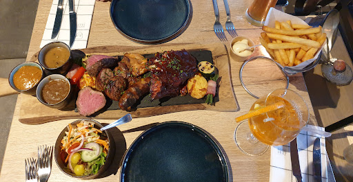 Read moreFood was ok but service was aweful. Took us 1.5 hours to get our food after twice mentioning we found out they totally forgot our order. They charged 4.5 euro for tap water and instead of 4.5 per wine glass charged 6.5 euro. Inside the burger was full of very bad tasting and old pulled pork. For kids they just had very unhealthy food and some steak . The steak was taste less . Yne...