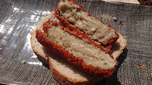 Read more04052023 De kalfskroketten van Ad van Geloven! Een zonnig plaatsje op het terras gevonden. Ja, de locatie is gewoon goed zo aan de rand van de Oisterwijkse plassen. Voor mij een twaalf uurtje. Ziet er goed uit. En, dan het tomatensoepje smaakte. Vervolgens de kalfsvleeskroket opengesneden. Een krokant jasje omsluit een witte massa, de rou. Hier en daar bespeur en ontdek ik licht rosé puntjes. Geen kalfsvlees. Voorgelegd aan de bediening. "Onze kroketten herbergen geen draadjesvlees!" Op mijn vraag wat de rose puntjes waren, kregen we geen antwoord. In mijn ogen niet meer dan een rou in een krokant jasje gebakken. Het kalf is er langs gelopen, heeft er overheen heegesnoven om vervolgens snel weg te lopen. Hoe kun je iets van Ad van Geloven op de kaart zetten als je deze alleen op zijn naam gelooft. Jammer, zo'n mooie locatie daar verdient de bezoeker ook kwaliteitsproducten. In een vleeskroket hoort ook draadjesvlees te zitten. Geen vreemde rosé bolletjes. Kijk uw rekening na En dan bij het afrekenen mogen we ook consumpties van een ander tafeltje afrekening. Ruim 24 euro meer. Goed dat we de rekening nakeken. Slordig.
