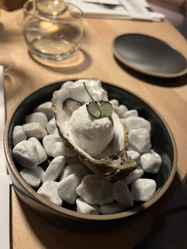 We waren de eersten die dag in het restaurant, maar het duurde zeker een half uur voordat we überhaupt de menukaart te zien kregen. Men ging eerst onze drankjes serveren en vervolgens een amuse, en uiteindelijk duurde het 2 uur van aankomst tot het serveren van het hoofdgerecht. Voor een 3-gangen diner zonder wijn hebben we er 3 uur gezeten, wat echt veel te lang is. We hadden bij elke gang zoveel honger dat we het eten dan ook meteen hadden opgegeten i.p.v. terug te sturen omdat het niet goed was.