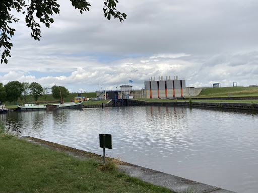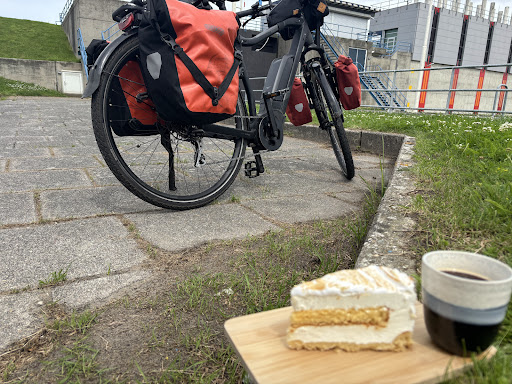 Read moreAuf einer Radtour suchten wir in Nieuwe Statenzijl Richtung Weener oben auf der Schleuse Schutz vor einem Schauer, und sahen unten auf dem Parkplatz einen Wagen mit Kaffee und gelbem Zelt daneben.