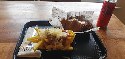 Er was geen zon meer op het terras, maar gelukkig mogen we met de honden ook binnen zitten. Al direct mogen we onze bestelling doorgeven, maar jeejtje, wat een keuze hebben ze. Zoveel verschillende friet met topping, zoveel snacks waar ik nog niet eerder van heb gehoord en alles ziet er zo lekker uit. Na wat keuze stress worden knopen doorgehakt en nemen we plaats aan tafel. Het is er allemaal erg schoon en de bediening is erg vriendelijk. Er lopen continue mensen binnen om eten af te halen. De friet met toppings is heerlijk, evenals de eigen gemaakte/verzonnen snacks. De prijzen zijn een stuk lager dan wij in Brabant gewend zijn.